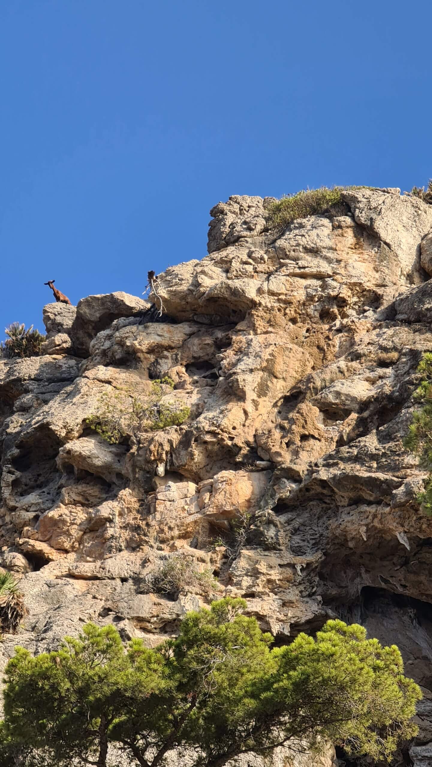Na ongeveer een half uur te genieten van de dolfijnen en het vroege ochtendzonnetje, gaan we weer een stukje terug richting het eiland Mallorca. We komen bij een baaitje, waar we langs diverse grotten varen en zelfs een berggeit zien boven op een berg. Even later houden we een tussenstop voor een korte snorkelsessie om vervolgens weer terug te gaan naar het beginpunt in Port D’Alcudia.