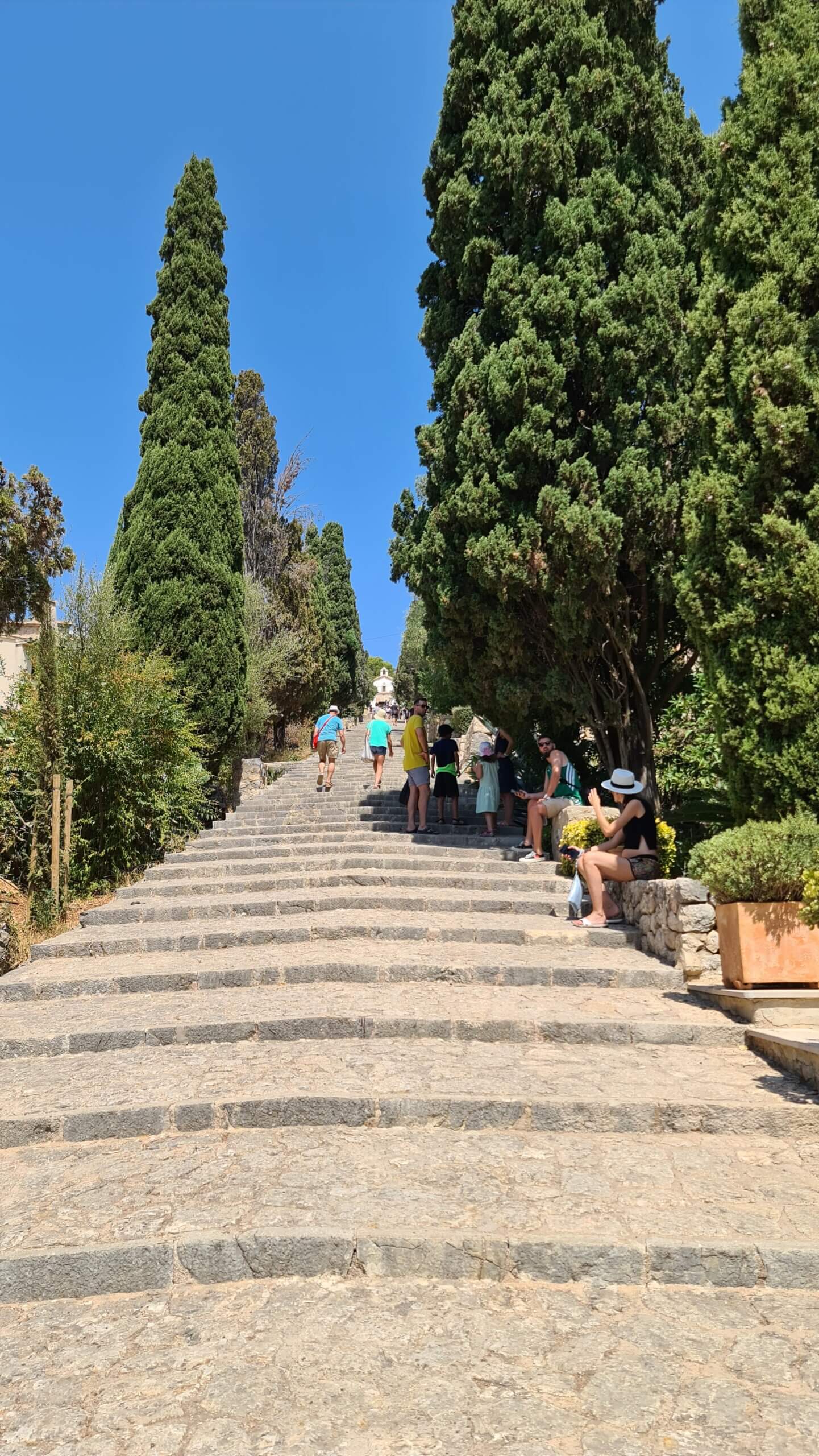 Na onze boottocht langs de dolfijnen, hadden we nog de rest van de dag om het eiland te verkennen. We kozen ervoor om richting Pollença te rijden en daar door de straatjes te struinen. Pollença is een klein stadje in het noorden van Mallorca en heeft een mooi centrum met kleine straatjes en leuke winkeltjes. Net buiten het centrum kan je middels 365 treden (voor elke dag van het jaar) naar een kapelletje op een berg wandelen. Vanaf daar heb je uitzicht over de hele stad en de bergen eromheen.
