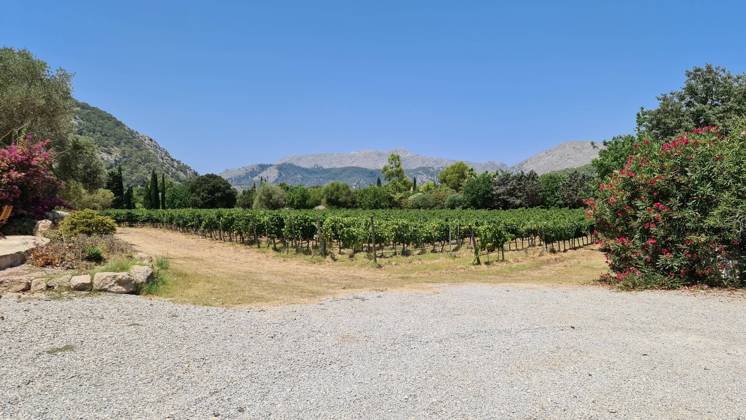 Omdat Cérise dol is op wijn, gaan we op een vakantiebestemming (die dat toelaat) vaak ook nog even langs een wijngaard. Op Mallorca kozen we voor de wijngaard in de buurt van het hotel, Bodegas can Vidalet. Het is een kleine wijngaard in het noorden van Mallorca, waar je terecht kan voor een tasting (op afspraak) of om gewoon langs te rijden om wat wijntjes (en zelfs gin!) te halen. Wij hadden van tevoren geen afspraak gemaakt voor een tasting, dus namen zelf een paar wijntjes mee om thuis te proeven en als souvenir mee te nemen voor onze ouders. De vrouw in de winkel vertelde ons dat ze vanuit Duitsland ook versturen naar Nederland, dus mochten we de wijn erg lekker vinden – dan kunnen we ze nog bestellen vanaf onze bank ;-).
